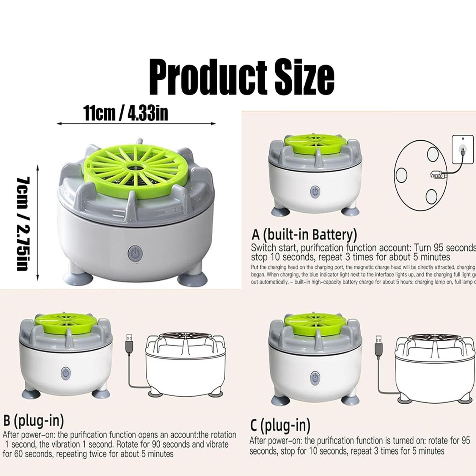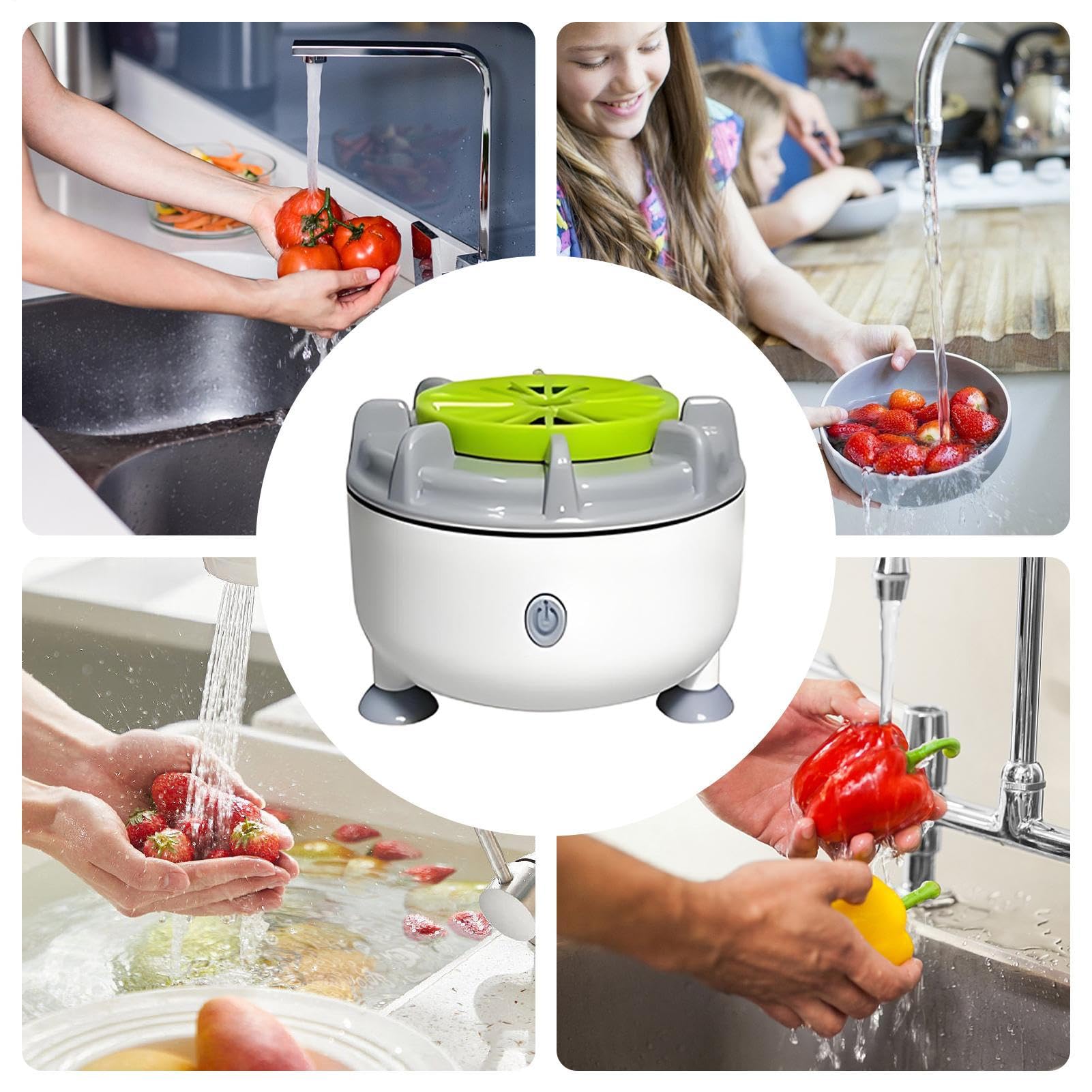 - Lavadora compacta átil: diseñada con formato compacto para encimeras, este dispositivo de limpieza portátil garantiza transporte sencillo y almacenamiento fácil. Solución ideal para lavar frutas y verduras eficientemente en interiores o al aire libre.
