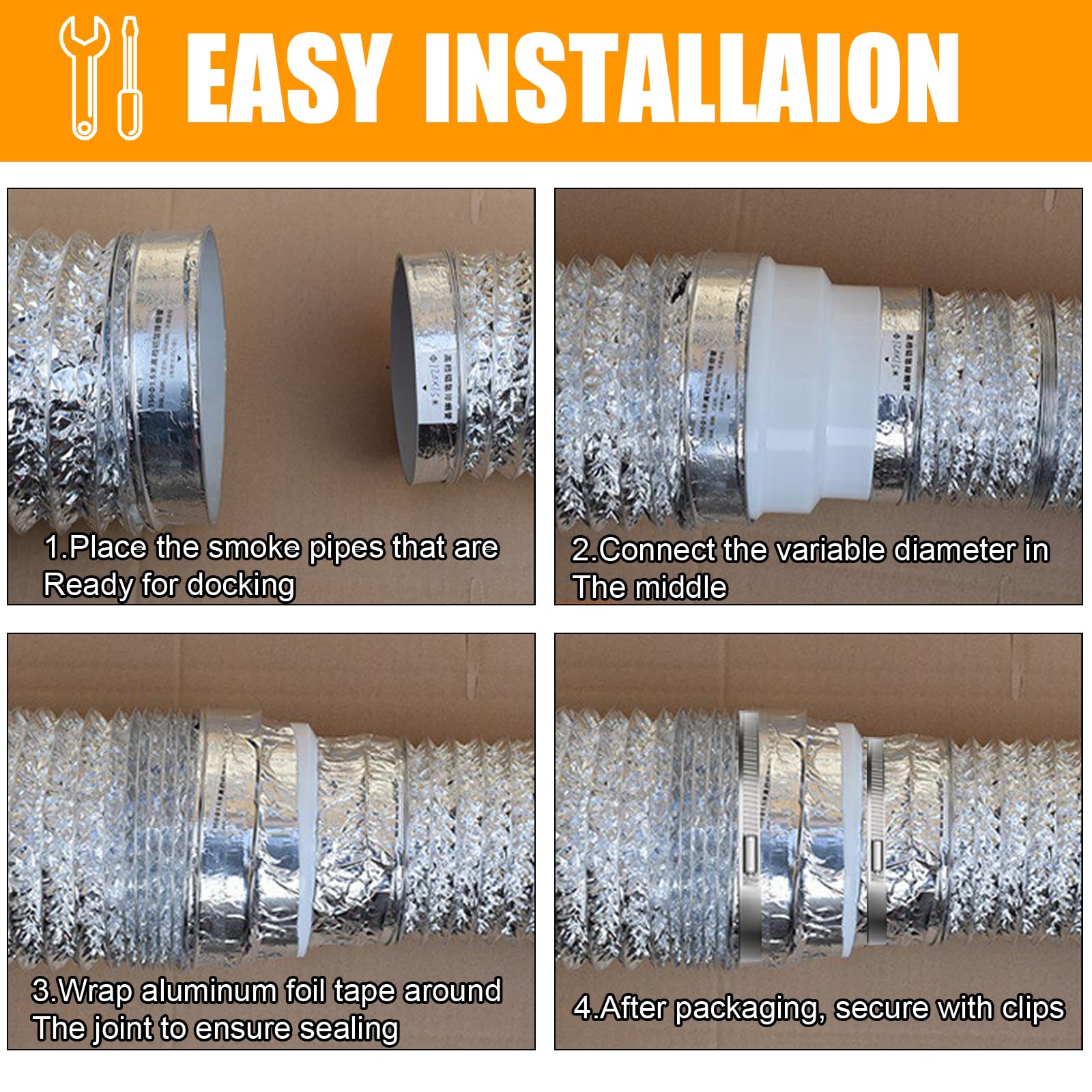 - Hervorragende Verarbeitung: Reduzierstücke für Lüftungsanlagen haben einen geringen Kaliberfehler, werden mit Metallschellen befestigt, haben eine gute Dichtwirkung und die Rohre sind dicht und leckagefrei verbunden. Aluminiumfolienband wird für eine einfache Verbindung mitgeliefert und die Gefahr von Undichtigkeiten verringert.