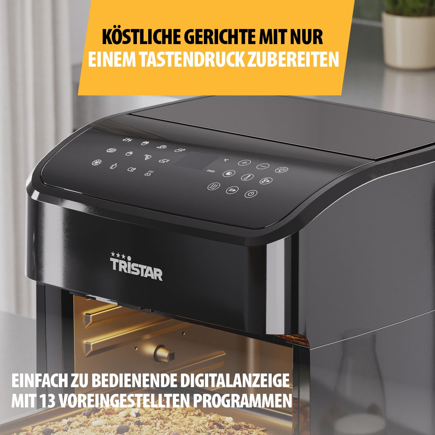 Tristar Mini Backofen & Heißluftfritteuse, 2-in-1-Airfryer, BPA-frei, 12 L, 12 Programme, Sichtfenster, 1800 W, FR-9065, Schwarz