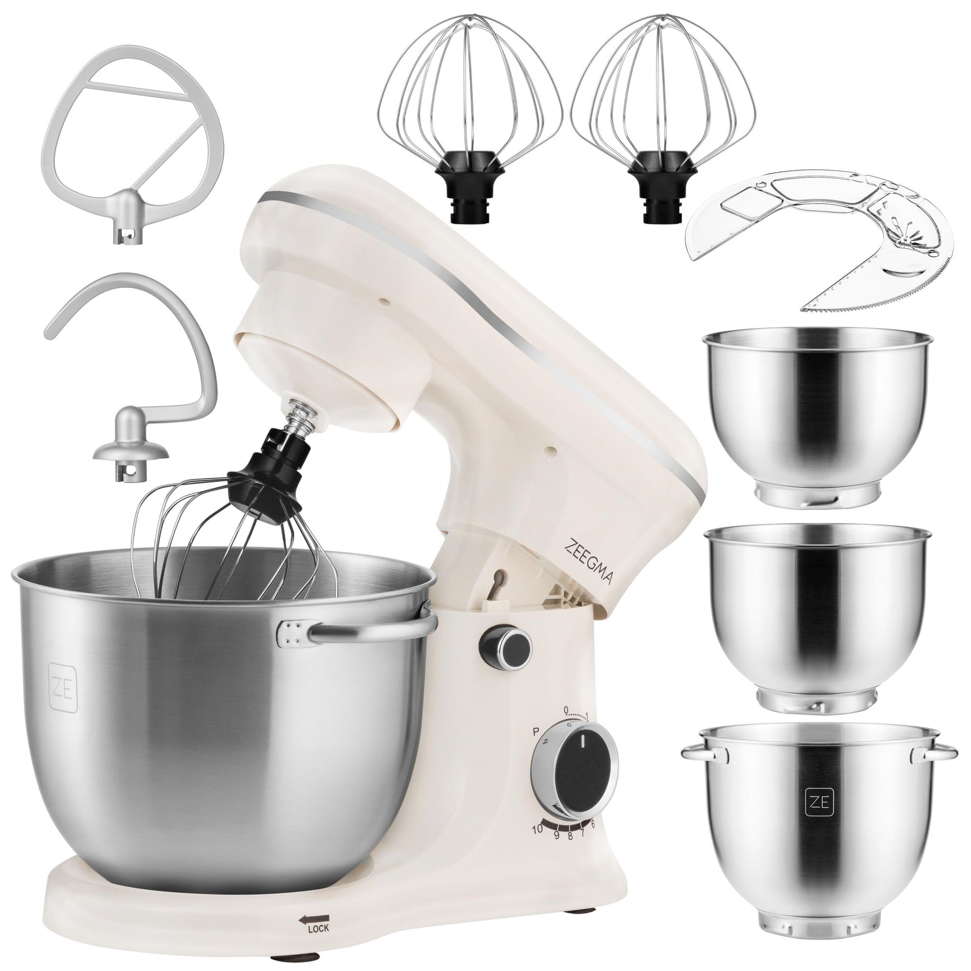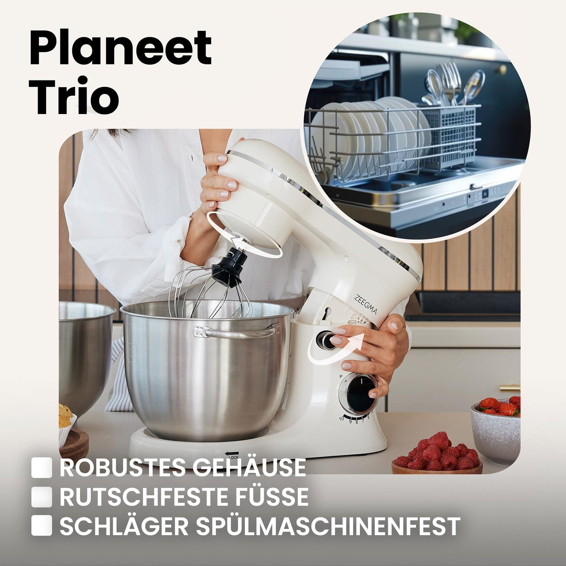 ZEEGMA PLANEET TRIO Planetenroboter, 1500 W, Multifunktionale Küchenmaschine mit 3 Schüsseln 4 l, 4,5 l und 5,2 l, 10 Betriebsgeschwindigkeiten, Mixer mit Haken, Schneebesen, Deckel mit Messgerät